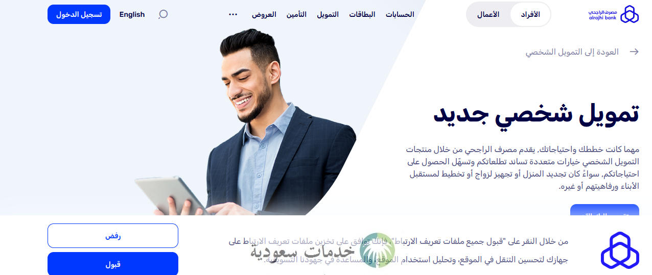 - تسجيل الدخول إلى الموقع الإلكتروني للراجحي.